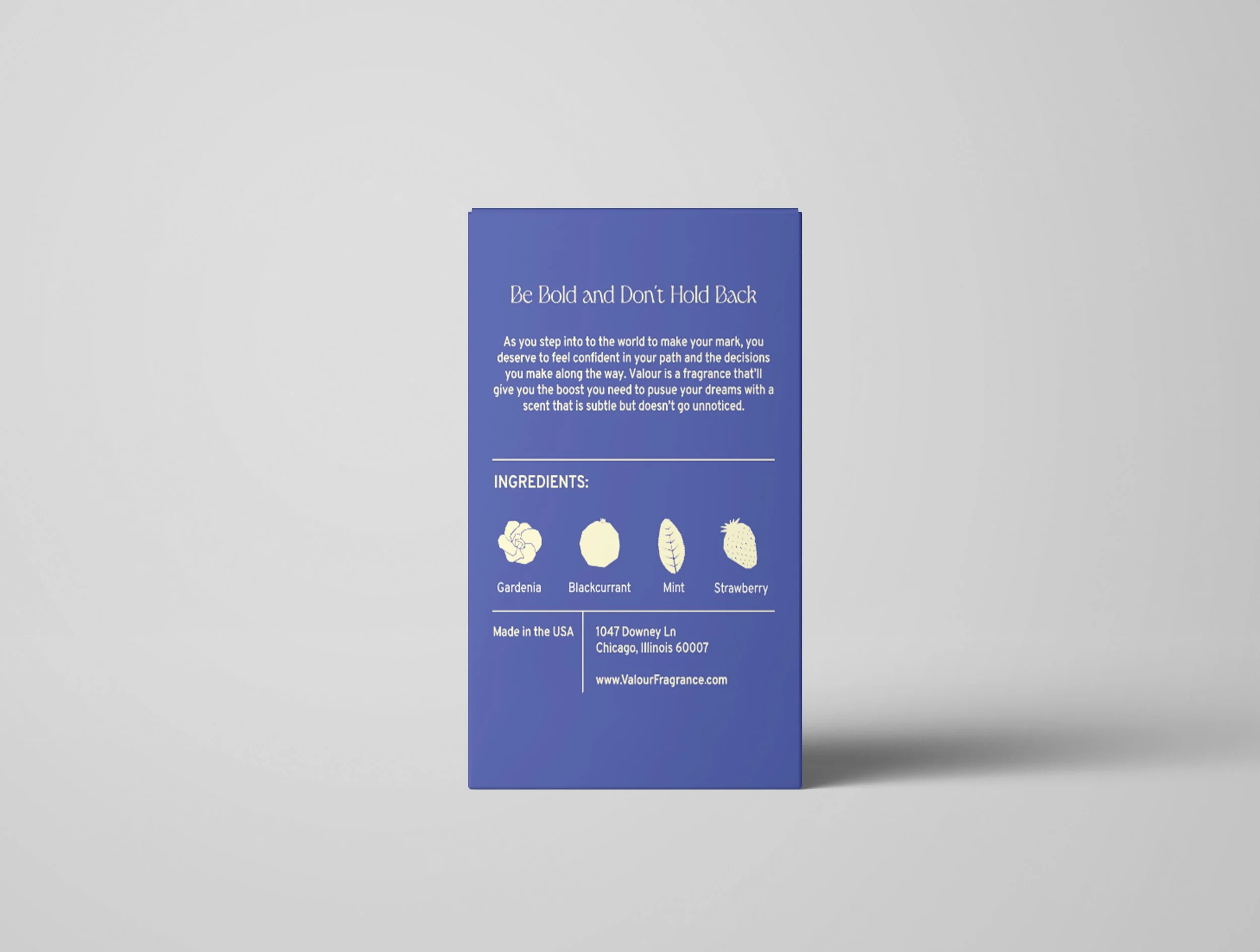 A modern, sophisticated fragrance that also has a slight touch of fun in some of its design elements. The typography has an elegant style to it and the illustrations on the box add the festive element that prevents the look of the packaging from being too dull for its audiences. The fragrance is meant for young adults just starting out their career in the workforce and is meant to give them a boost of confidence to pursue their goals.